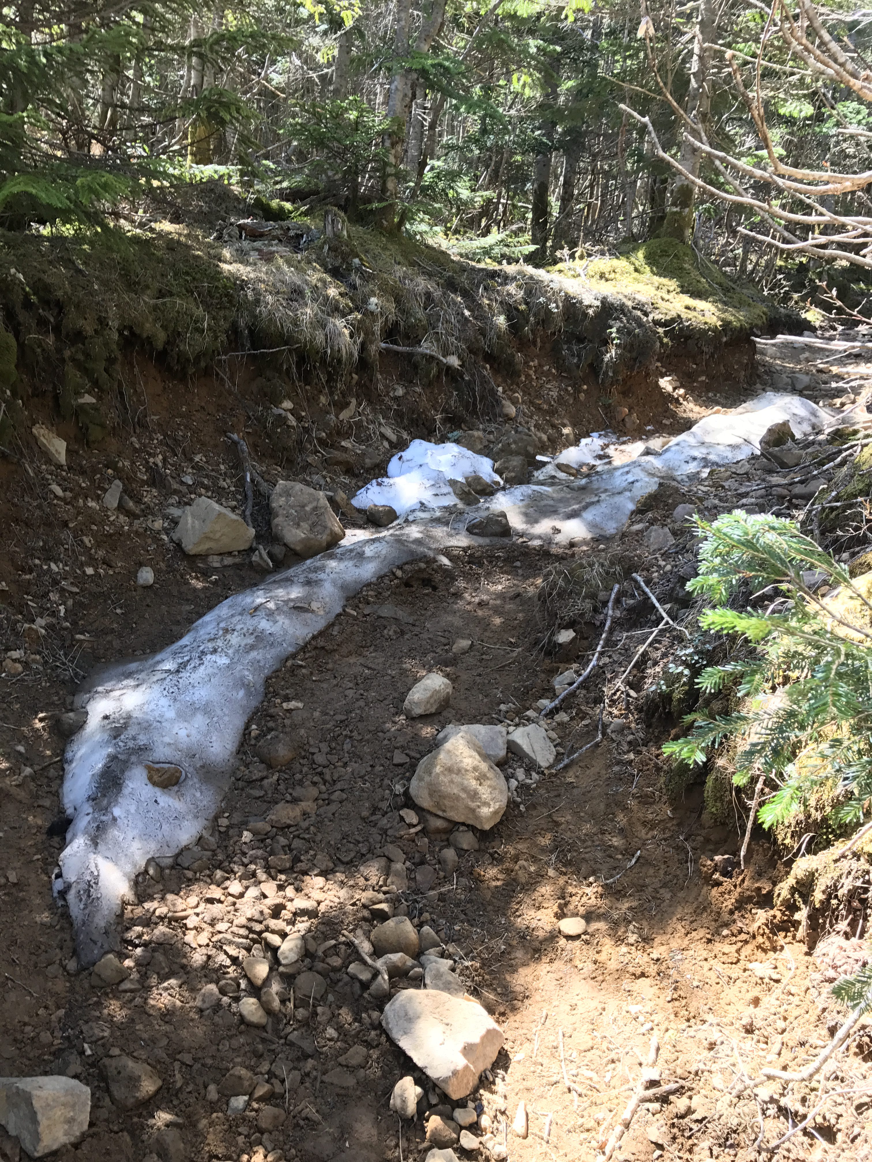 中岳の鞍部の沢 残雪がすごい